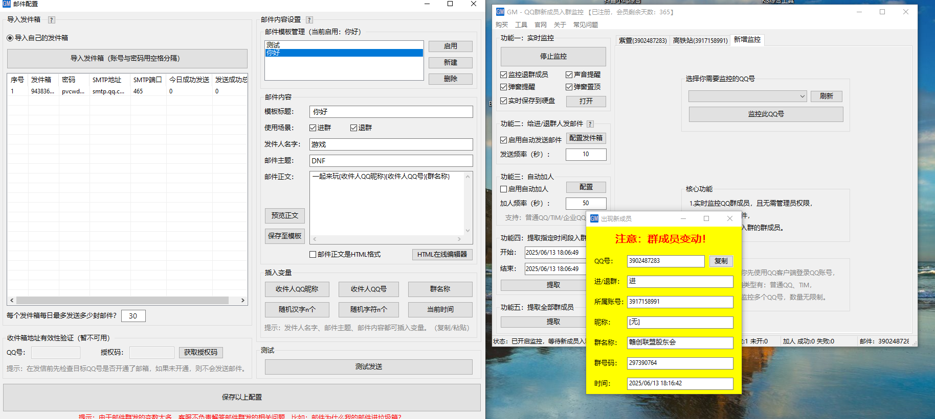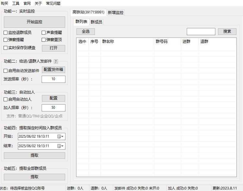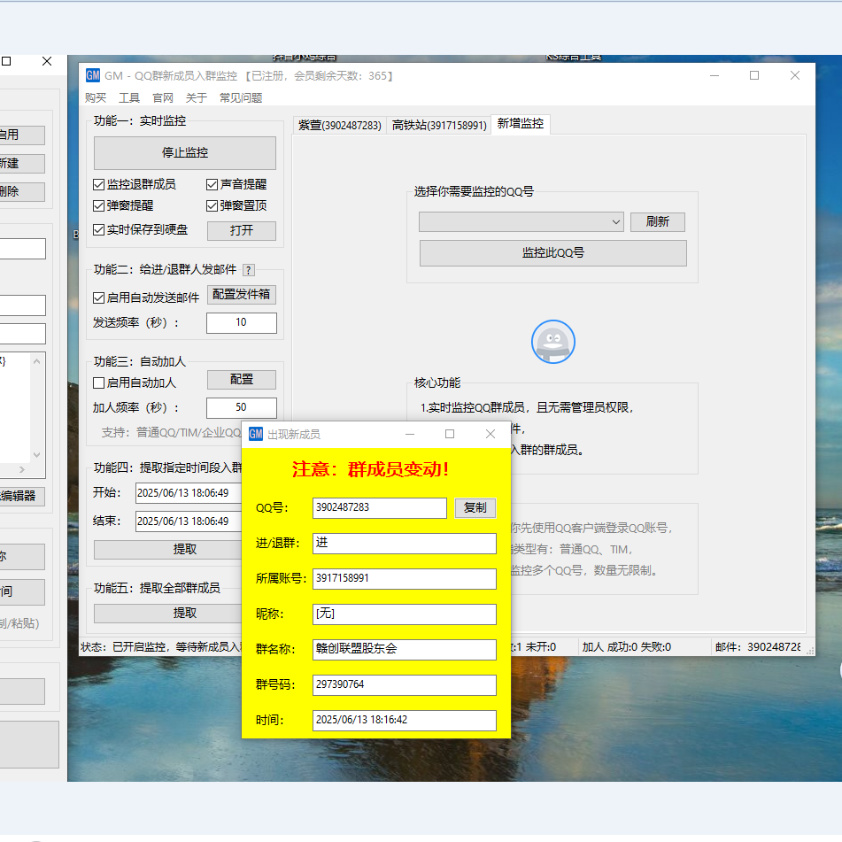 新人进群,退群都可以监控发邮件